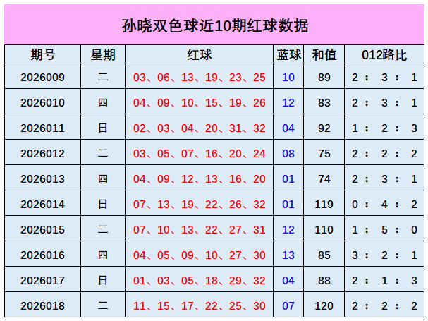 上期回来:双色球第2026018期开出奖号:红球11、15、17、22、25、30;蓝球07,其中红球和值为120,012路比为2:2:2,奇偶比4:2,蓝球开出小奇数号码07。