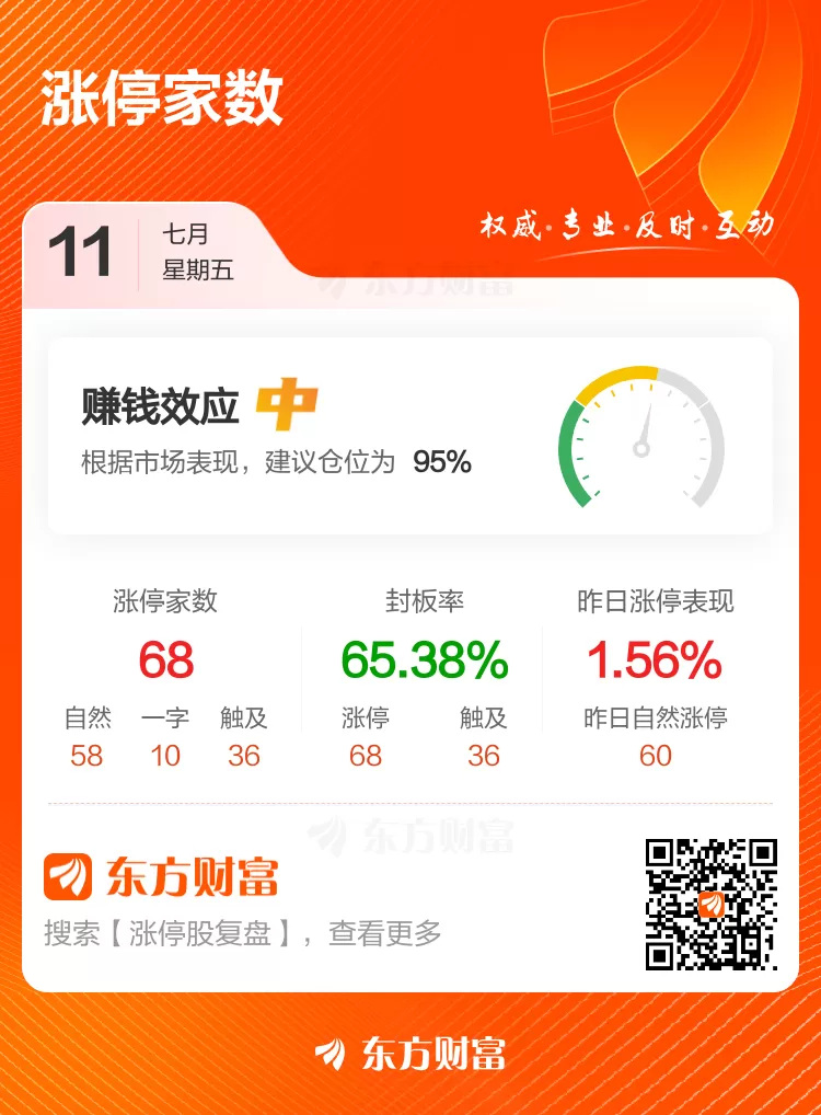 7月11日涨停复盘:68只股涨停 华媒控股4连板